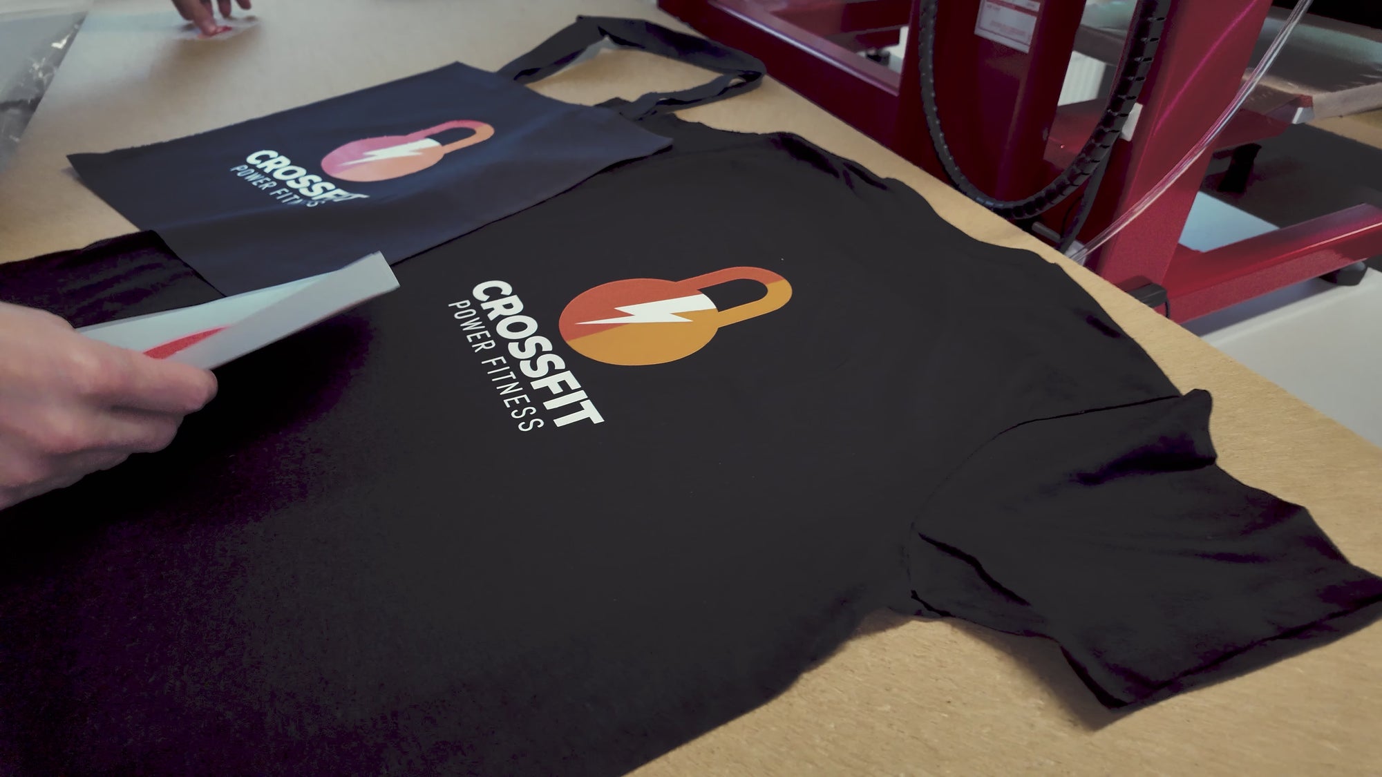Placera din transfer på ditt plagg. Tryck på DTF-transfern i 10 sekunder vid 150°C och dra sedan av den omedelbart. Spara produktionstid!